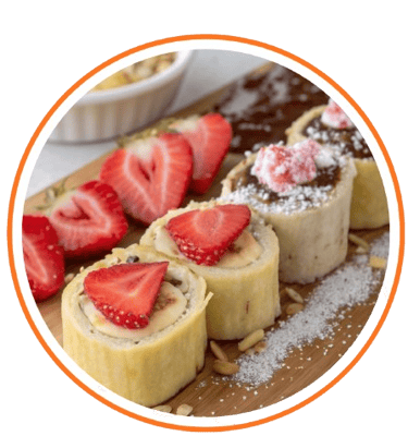 Aprende paso a paso a preparar distintos tipos de Sushi Dulce: con arroz, crepe, bizcocho, masa de galleta y combinaciones, siguiendo recetas claras y detalladas.
